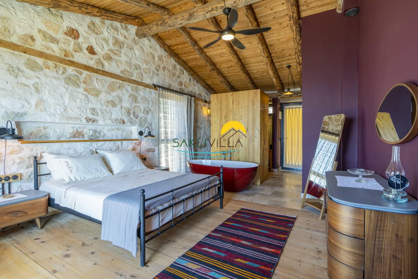 4.Yatak odası: Yatak odası içerisinde, 1 adet çift kişilik yatak, klima, elbise dolabı, komodin, makyaj masası, küvet, banyo ve tuvalet yer almaktadır.