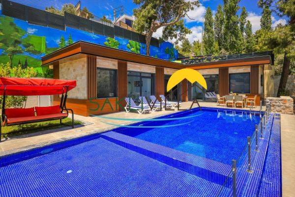 Villa Sr’nin en dikkat çeken özelliklerinden biri, geniş ve bakımlı bahçesi ile 11 metre uzunluğundaki yüzme havuzudur. Havuz, korunaklı bir şekilde tasarlanmış olup, güvenli ve rahat bir kullanım sunar. Bahçede bulunan şezlonglar, salıncak ve yemek masası, misafirlerine hem güneşlenme hem de keyifli vakit geçirme imkânı sağlıyor. Ayrıca, çocuklar için özel olarak tasarlanmış oyun alanı, ailelerin çocuklarıyla birlikte stressiz bir tatil geçirmesine olanak tanıyor. Bahçenin geniş yeşil alanı, doğayla iç içe olmanın keyfini çıkarmak isteyenler için harika bir ortam sunuyor.