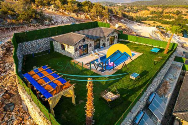 Doğa ile iç içe olan kiralık yazlık villamız özel tasarımı ile göze çarpmaktadır. Her detayı özel tasarlanmış olan villamız da konforu hissedecek, tatilinizi keyifli geçirme imkânı bulacaksınız.
