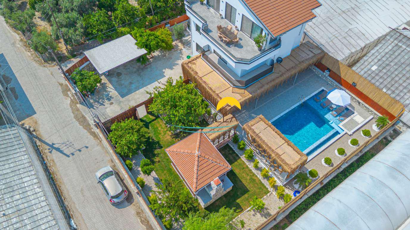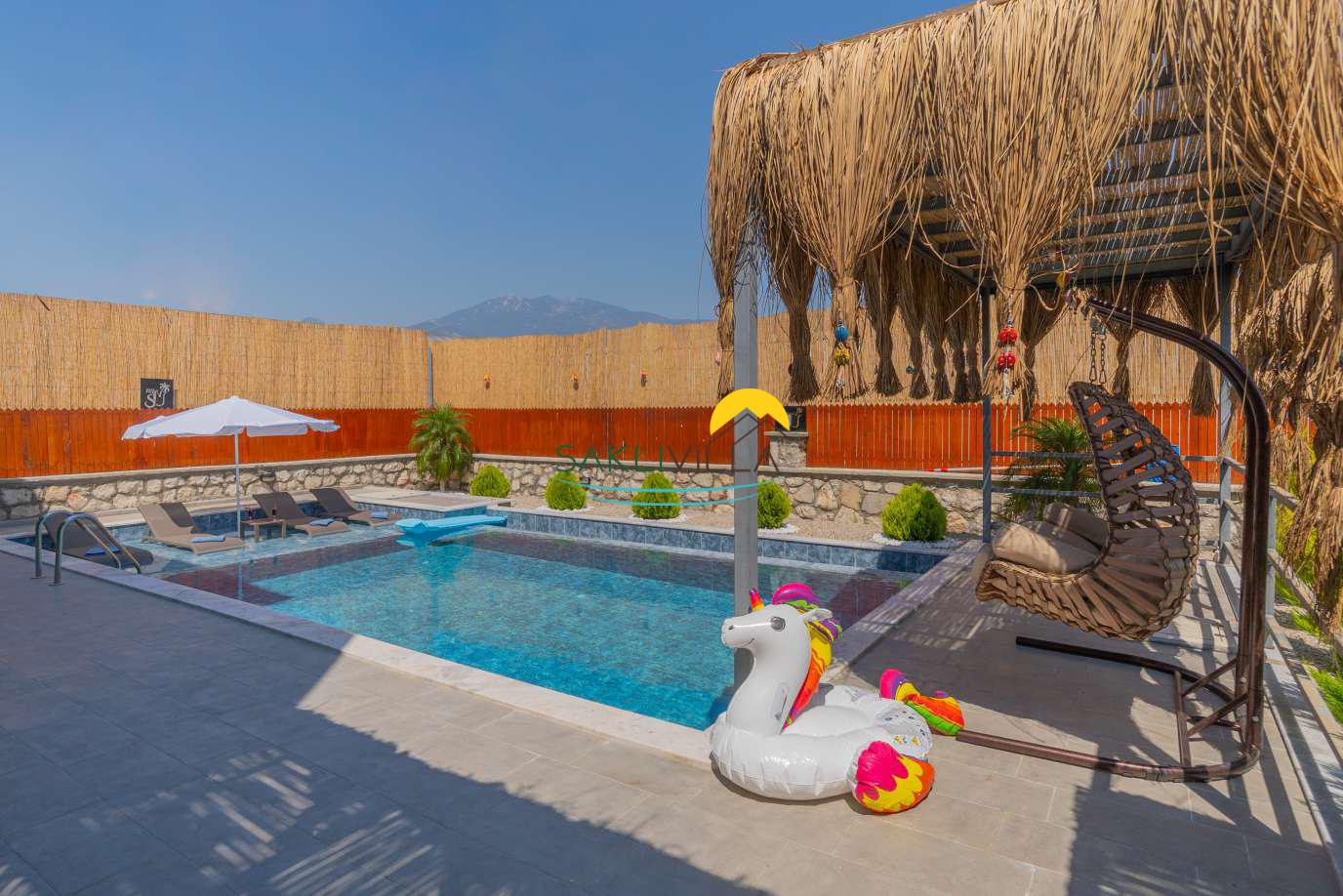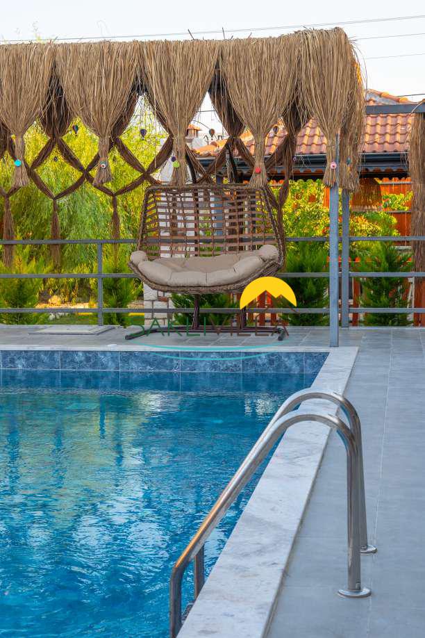 Villa Su’nun en önemli özelliklerinden biri, misafirlerine sunduğu özel korunaklı yüzme havuzudur. Sıcak yaz günlerinde serinlemek ve güneşin tadını çıkarırken mahremiyetinizi korumak isteyenler için bu havuz, özgürce eğlenme ve dinlenme imkanı sağlar. Havuzun etrafında yer alan oturma alanları ve bahçe düzenlemeleri, doğayla iç içe, huzurlu ve estetik bir atmosfer yaratır. Konuklar, burada sevdikleriyle beraber huzurlu ve keyifli anlar geçirebilir.