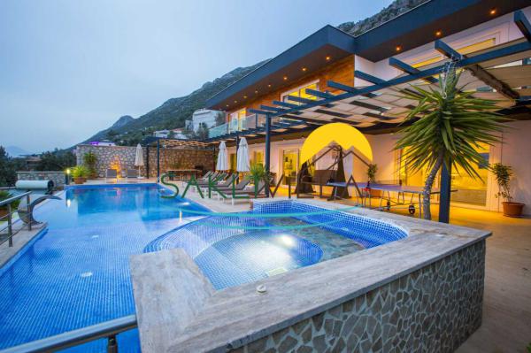 Kalkan lüks kiralık villamızın geniş havuzunda Akdeniz sıcaklığında serinleyecek, geniş havuz terasında bulunan yemek masası ve sandalyeleri sayesinde sevdiklerinizle ve arkadaşlarınızla enfes sabah kahvaltıları ve enfes akşam yemekleri yiyeceğinizden şüpheniz olmasın.