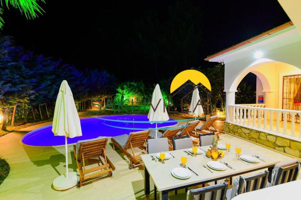 Dalaman'ın eşsiz doğal ortamında bulunan güzel villamız, ihtiyaçlarınıza cevap verecek nitelikte dizayn edilmiş olup tüm odalarından havuz ve dağ manzarasına sahiptir.
