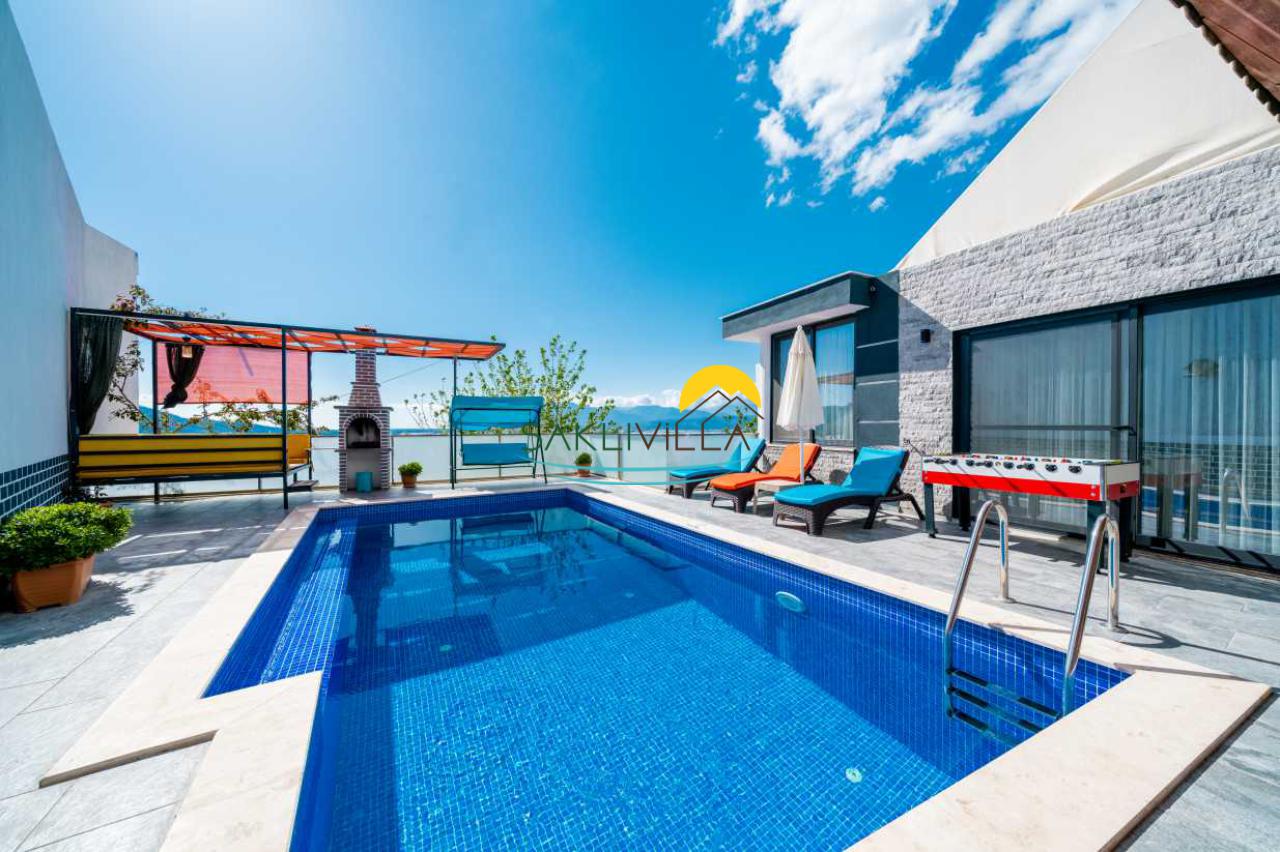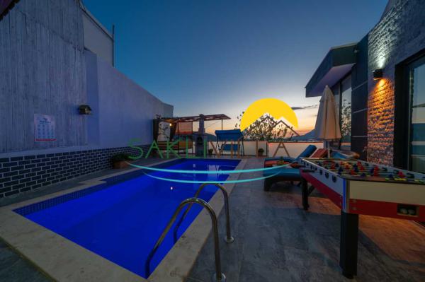 Villa'nın en dikkat çekici özelliklerinden biri özel yüzme havuzunun bulunmasıdır. Misafirler, bu havuzda ailenizle ya da sevdiklerinizle keyifli anlar geçirebilir; güneşin altında serinlemek için mükemmel bir fırsat yakalayabilirler. Ayrıca havuz terasında bulunan langırt, misafirlerin eğlenceli vakit geçirmelerini sağlayacak bir diğer olanak olarak öne çıkmaktadır. Ailecek yapacakları oyunlar, tatilin unutulmaz anıları arasında yer alacaktır.