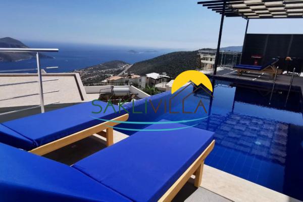 Havuz katı perdeleme sistemi ile kapatıldığından muhafazakar aileler gönül rahatlığı ile tercih edebilirler. Deniz manzaralı lüks kiralık villamızda muhteşem bir tatil sizleri beklemektedir.
