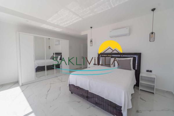 2.Yatak Odası: Bir adet çift kişilik yatak, elbise dolabı, komodin, makyaj masası, klima ve TV yer almaktadır. Özel banyo ve tuvalet bulunmaktadır.