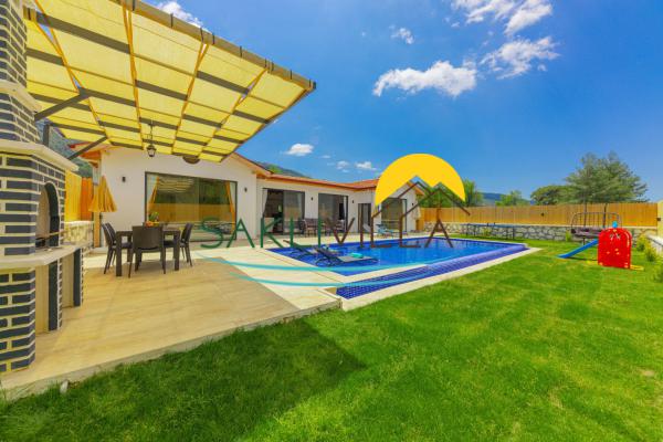 Villanın kendine özel geniş çim bahçe alanı, misafirlerine yeşil bir cennet sunmakta ve açık havada vakit geçirebilmeleri için çeşitli imkânlar tanımaktadır. Bahçenin sunduğu bu alan, özellikle çocuklu aileler için aktivite ve oyun alanı oluştururken, aynı zamanda balayı çiftleri için romantik anılar biriktirmek adına mükemmel bir atmosfer yaratmaktadır. Bu tür bir doğal ortamda, misafirlerin rahatlayarak tatillerinin tadını çıkarabilecekleri, kendilerini yeniden enerji dolu hissetmeleri için gerekli olan ambiyans fazlasıyla mevcuttur.