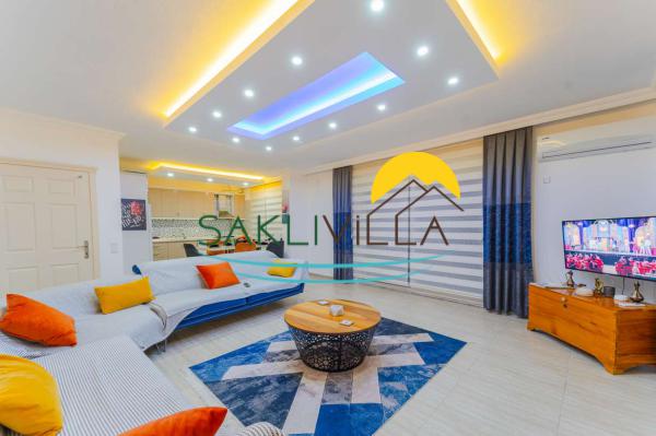 Salonumuzda rahat, modern, lüks oturma gurubu, tv ve uydu alıcısı, ütü masası, limitsiz kablosuz internet, havuz kıyısına ve bahçeye çıkış vardır.