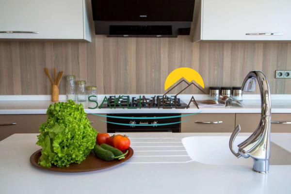 Mutfak:şık, rahat, geniş, lüks ve modern bir mutfağı vardır. Buzdolabı, bulaşık makinası, fırın, mikrodalga fırın, 4'lü ocak, ekmek kızartma makinası, 8 kişilik yemek takımı, tava, tencereler, çatal, bıçak vb.