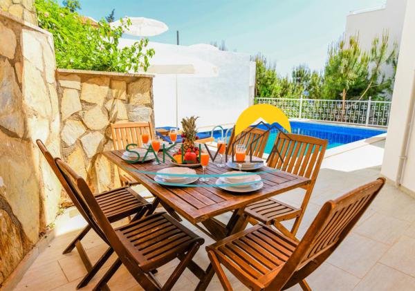 Özellikler: Özel açık yüzme havuzu, güneşlenme alanı, şezlonglar, özel bahçe, özel park yeri ve mangal alanı.