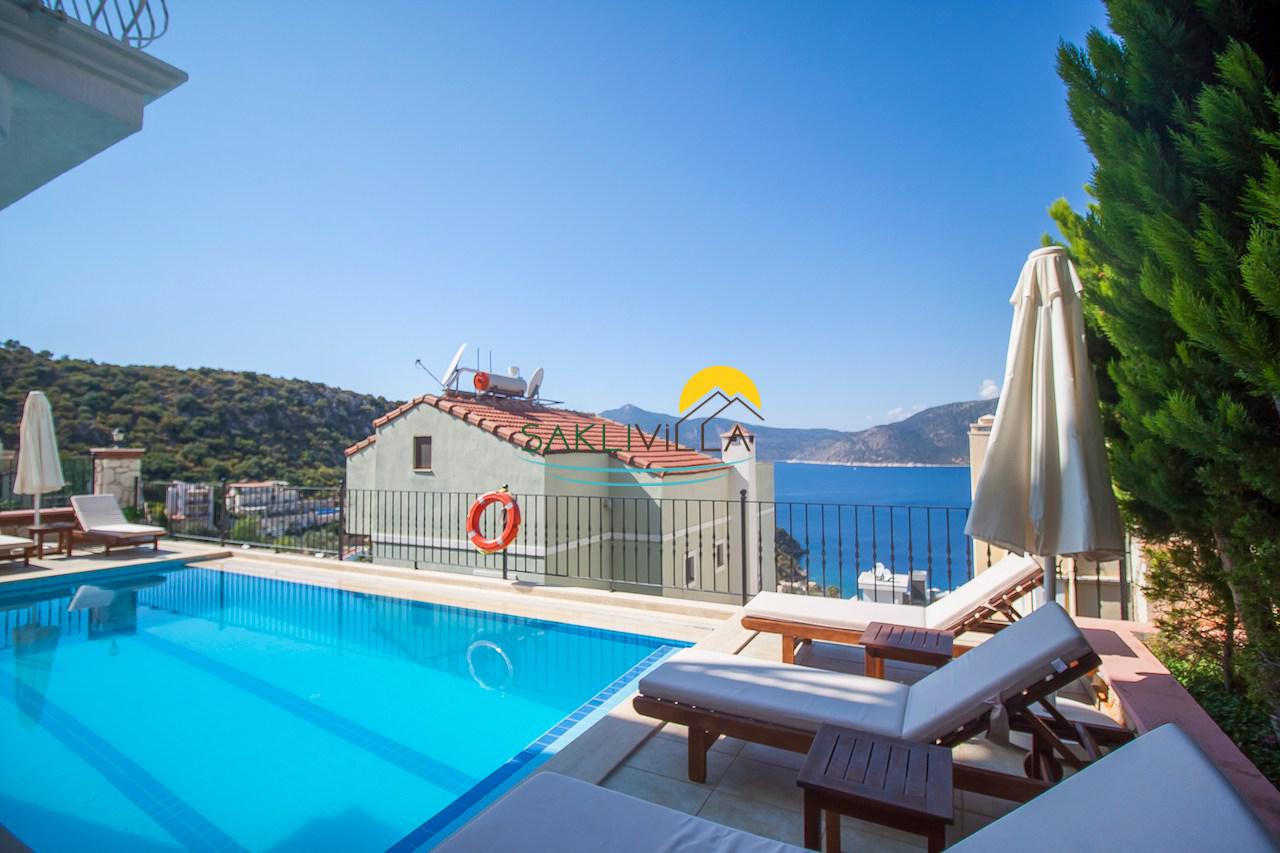 Villa White Star'ın en çekici özelliklerinden biri terasının muhteşem manzarasıdır. Terasından masmavi denizi izleyebilir ve eşsiz doğa güzelliklerinin keyfini çıkarabilirsiniz. Bu muhteşem manzara, konuklara huzurlu ve keyifli bir tatil ortamı sunar. Ayrıca villanın konumu da avantajlıdır; Kalkan Merkeze sadece beş dakikalık bir sürüş mesafesinde bulunmaktadır, bu da konuklara şehir hayatının sunduğu imkanlardan kolayca faydalanma şansı verir.