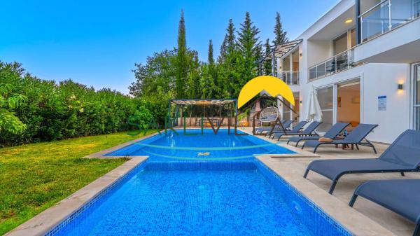 Kalkan İslamlarbölgesinde yer alan Villa Whitestone, mimari zarafeti ve doğal güzellikleri bir araya getirerek, konforlu bir tatil deneyimi arayanlar için ideal bir seçenek oluşturmaktadır. 850 m²’lik geniş bir arazide konumlanan bu iki katlı kiralık villa, yapılaşmanın az olduğu bir alanda yer alması sayesinde, hem muhafazakar hem de gizliliğe önem veren aileler için son derece uygun bir ortam sunmaktadır.
