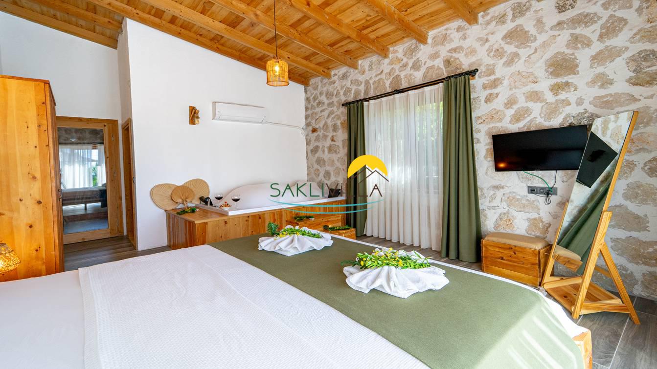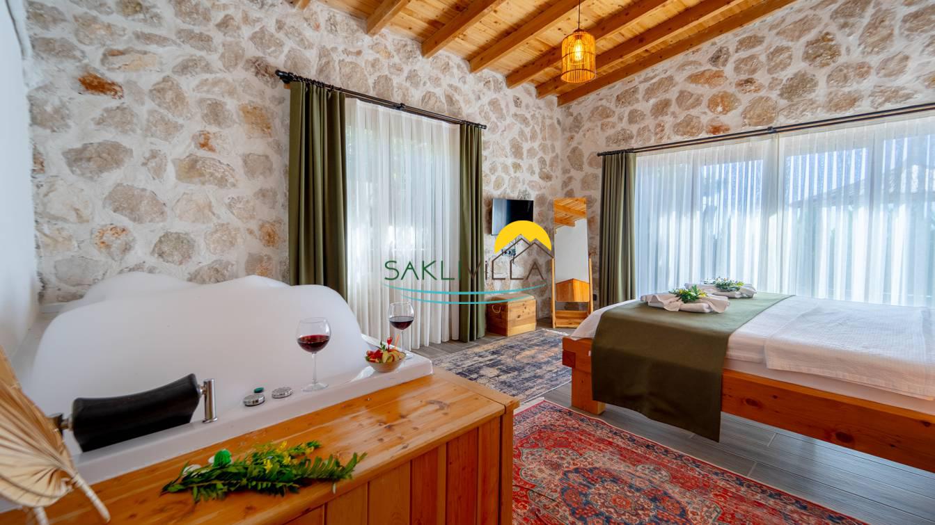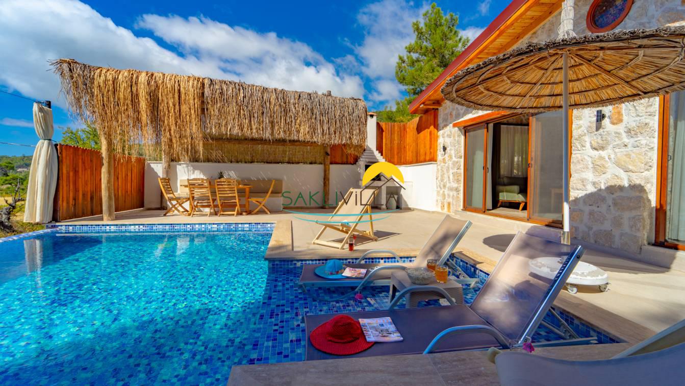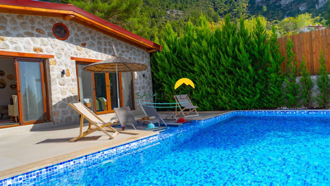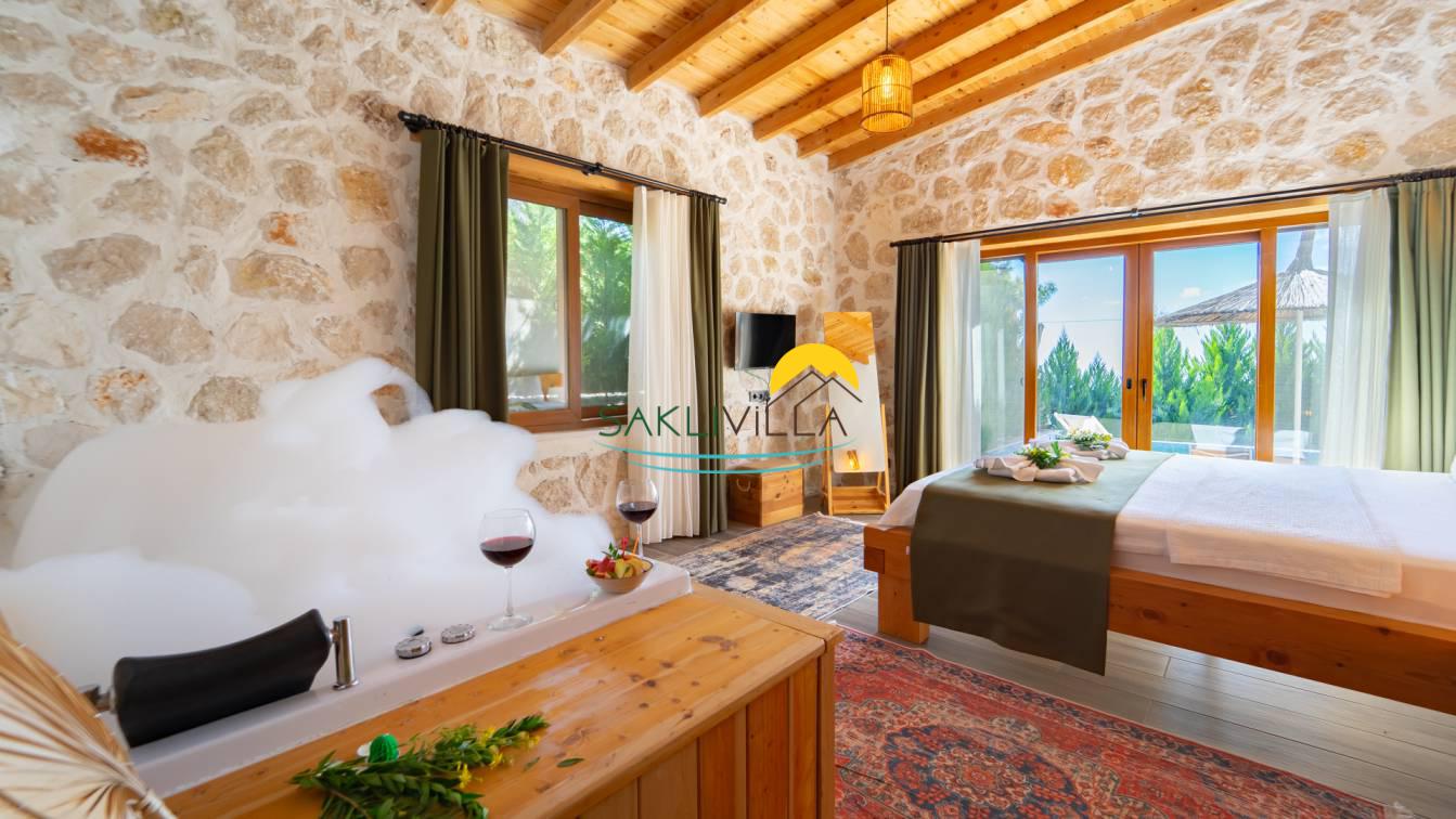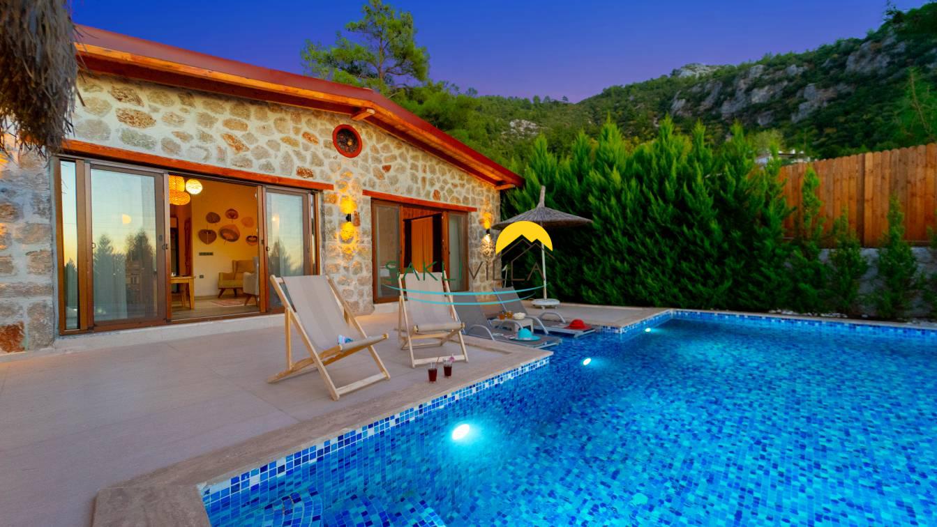 Villa Yağmur Kalkan İslamlar’da Korunaklı Havuzlu Jakuzili Kiralık Villa
