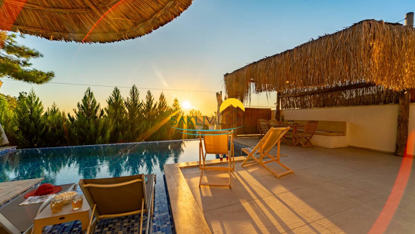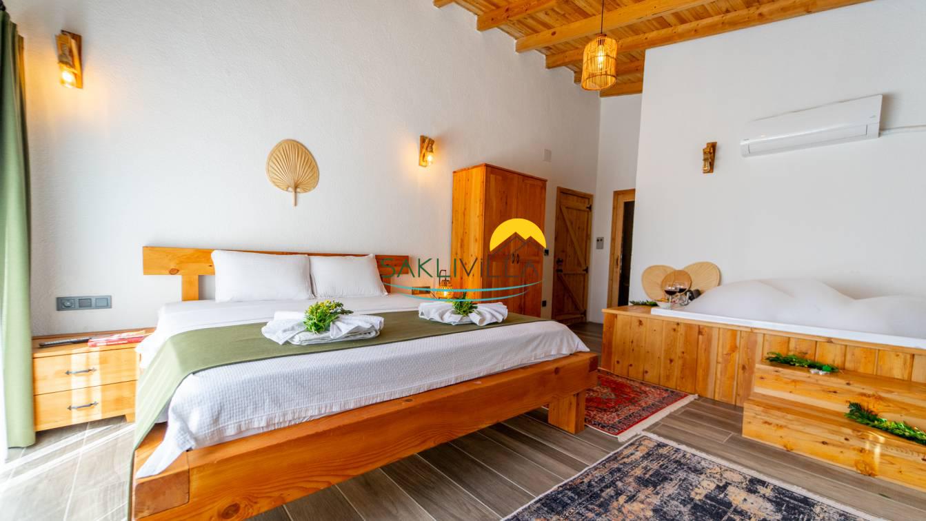 Villa Yağmur, iki yatak odalı kiralık villa seçenekleri arasında ön plana çıkmaktadır. Bu yatak odaları, ferah ve estetik açıdan göze hitap edecek şekilde dizayn edilmiştir. Villanın suit yatak odasında bulunan jakuziise, lüks konaklamanın ve rahatlamanın simgesidir. Günün yorgunluğunu atmak isteyenler için ideal olan bu jakuzi, romantik anlar ve özel günler için unutulmaz deneyimler sunar. Villanın iç mekan dekorasyonu, çağdaş ve şık çizgileriyle, tatilcilere ev konforunu aratmayacak bir atmosfer yaratmaktadır.