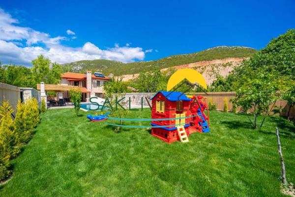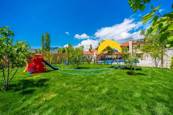 Bahçe : Bahçe içerisinde özel yüzme havuzu, şezlong, bahçe mobilyaları, barbekü, Çocuklar için oyun parkı bulunmaktadır.
