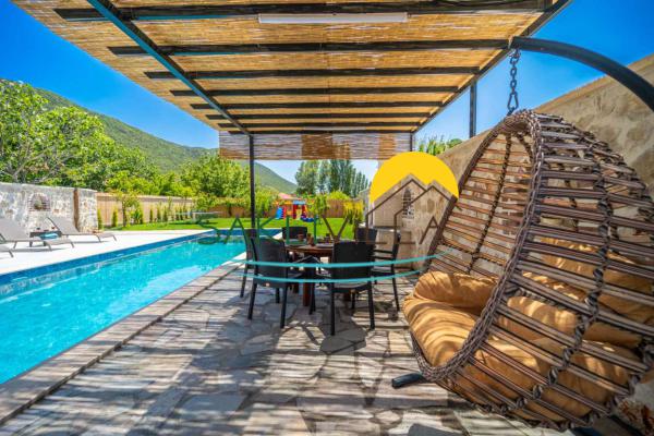 Özellikler: Korunaklı özel açık yüzme havuzu, güneşlenme alanı, şezlonglar, özel bahçe, özel park yeri ve mangal alanı.
