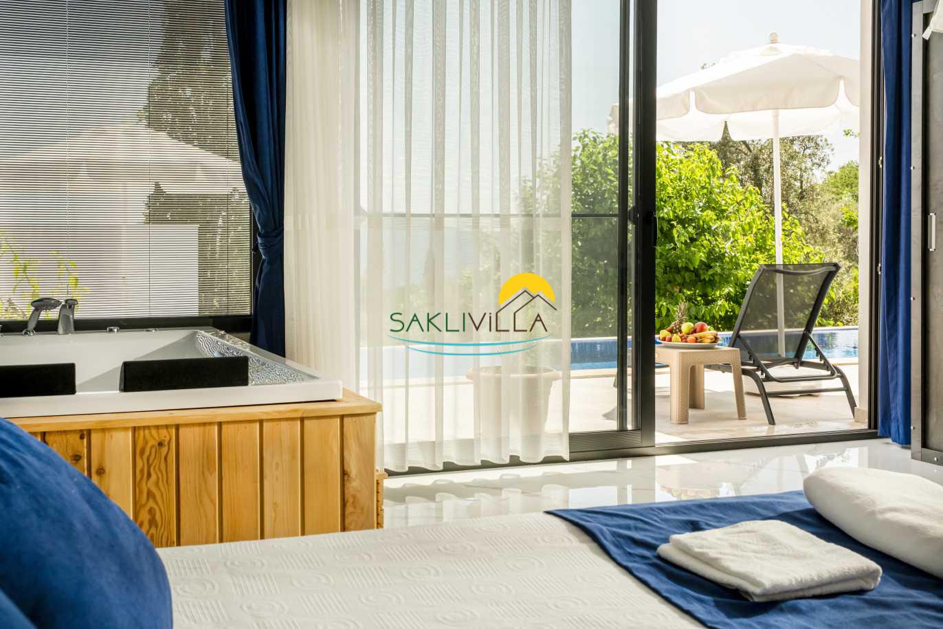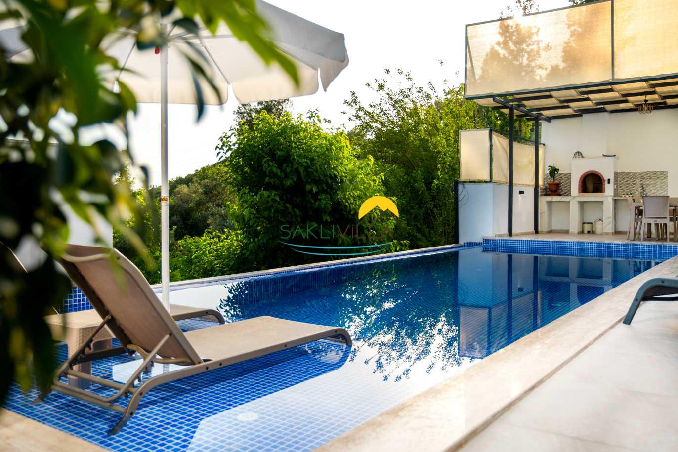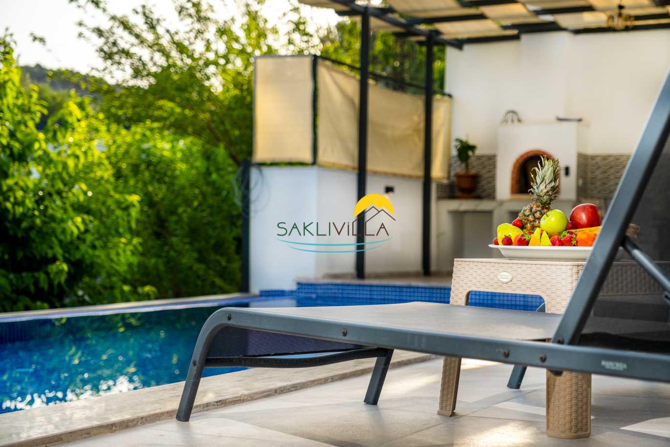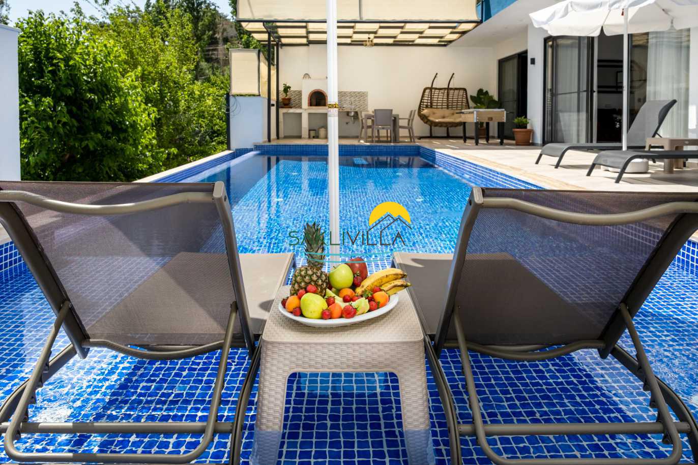 Villa Yudum’un en dikkat çekici özelliklerinden biri, tamamen korunaklı bir havuz alanına sahip olmasıdır. Bu özellik, ailelerin ve balayı çiftlerinin mahremiyetine önem verenler için büyük bir rahatlık sunmaktadır. İnce düşünülmüş bu detay, misafirlerin rahatlıkla güneşlenip, serin suların tadını çıkararak, stresli günlük yaşamdan uzaklaşmalarını sağlayacaktır. Havuzun çevresi, yeşilliklerle çevrili olup, doğa ile iç içe bir deneyim sunarak, misafirlerimizin dinlenme ve huzur bulma arzusunu pekiştirmektedir.