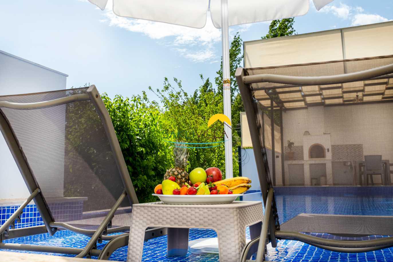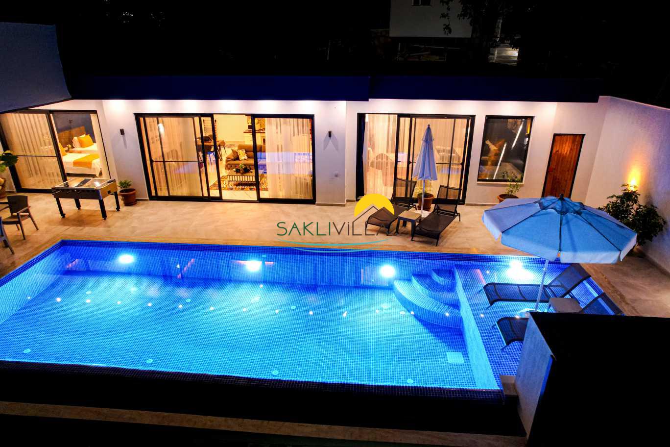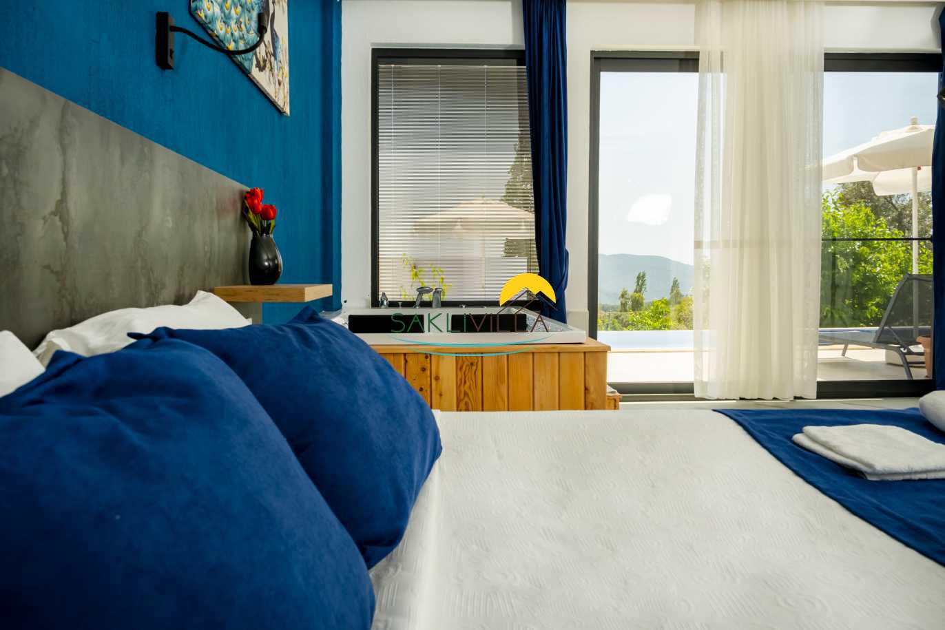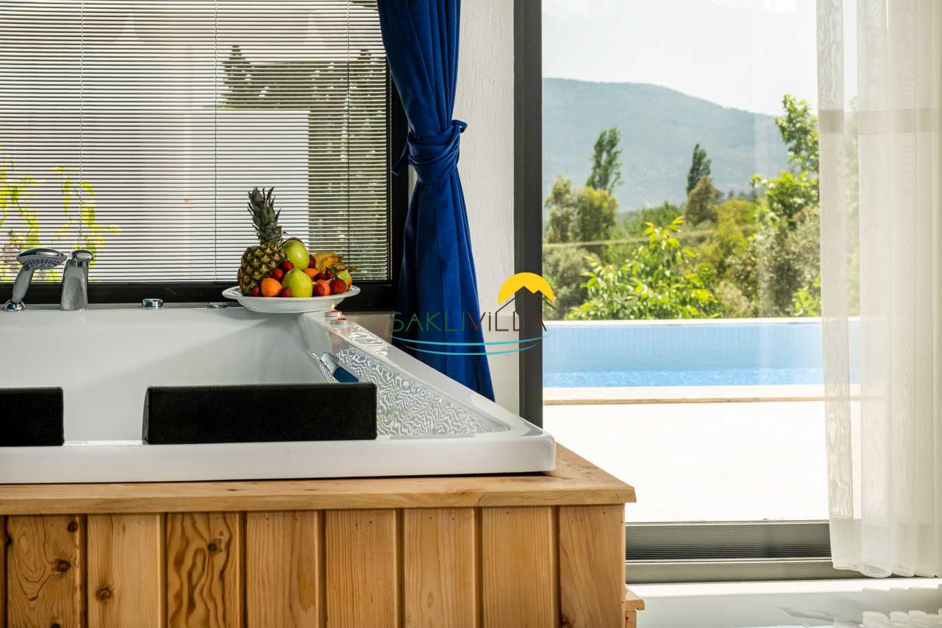 Villa Yudum’un en dikkat çekici özelliklerinden biri, tamamen korunaklı bir havuz alanına sahip olmasıdır. Bu özellik, ailelerin ve balayı çiftlerinin mahremiyetine önem verenler için büyük bir rahatlık sunmaktadır. İnce düşünülmüş bu detay, misafirlerin rahatlıkla güneşlenip, serin suların tadını çıkararak, stresli günlük yaşamdan uzaklaşmalarını sağlayacaktır. Havuzun çevresi, yeşilliklerle çevrili olup, doğa ile iç içe bir deneyim sunarak, misafirlerimizin dinlenme ve huzur bulma arzusunu pekiştirmektedir.