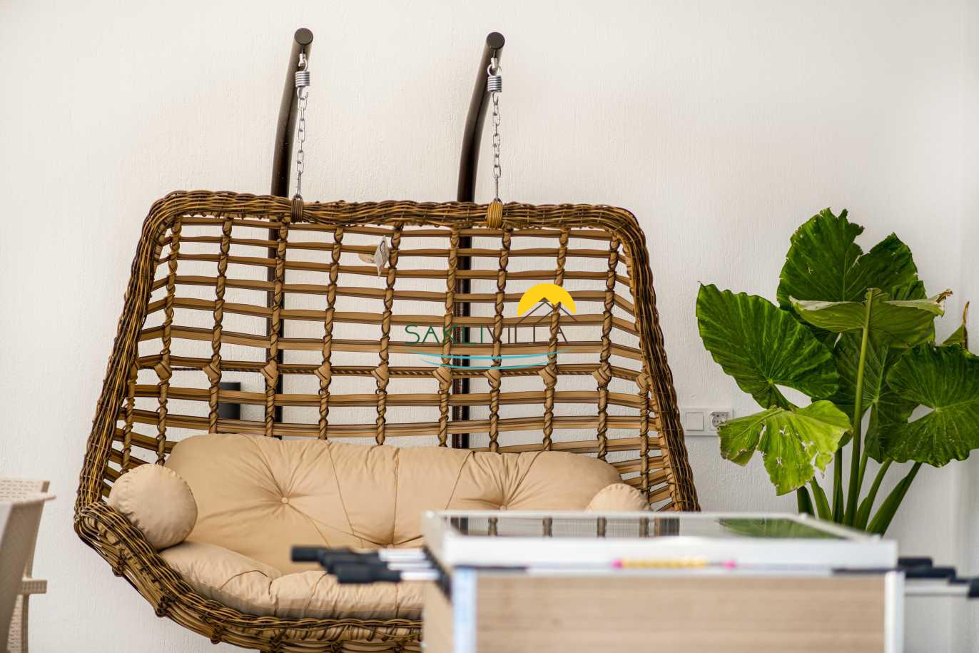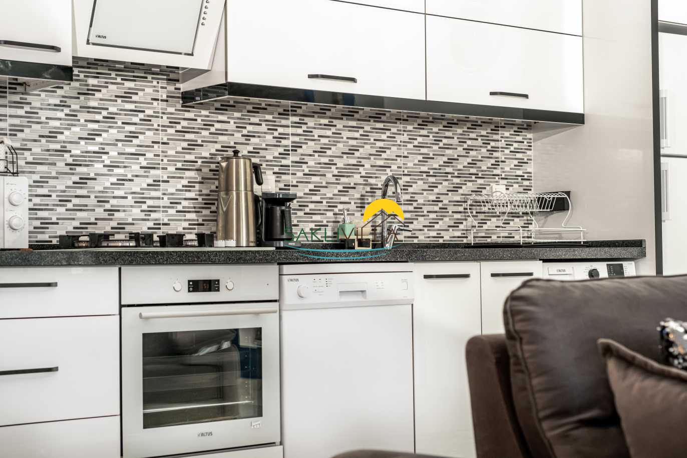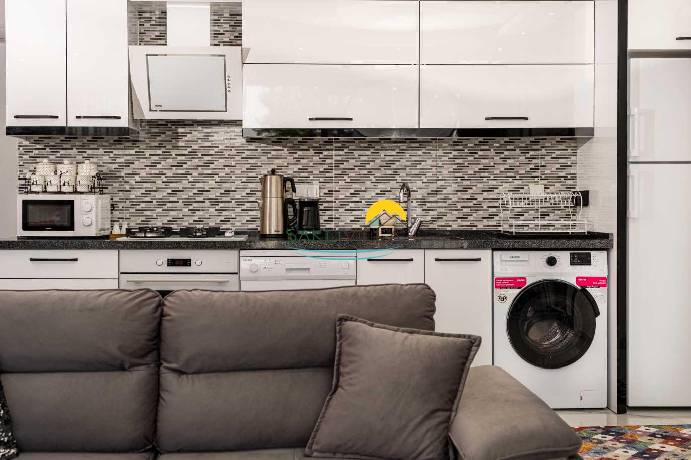 Salon bölümünde ise geniş bir oturma grubu, televizyon, klima ve tam donanımlı mutfak bulunmaktadır. Bu alan, misafirlerin bir araya gelerek keyifli sohbetler edebileceği ve birlikte güzel yemekler hazırlayabileceği bir atmosfer sunmaktadır. Geniş pencereler sayesinde bol miktarda doğal ışık alan bu alan, ferah bir ortam yaratmakta ve dışarı dan gelen doğal güzelliklerle bütünleşmektedir.