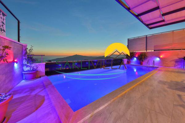 Villa Zaza'nın zemin katında geniş ve ferah salon ayrıca tatilinizin daha eğlenceli bir durumda geçmesi için, kapalı ısıtmalı havuzu bulunmaktadır.