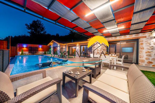 Kalkan İslamlar bölgesinde bulunan Villa Zilçe, muhteşem deniz ve doğa manzaralarıyla çevrili, 2 yatak odalı ve 5 kişilik kapasiteye sahip lüks bir kiralık villadır. Taş mimariyle inşa edilen bu villa, konforlu ve şık bir konaklama deneyimi sunmaktadır.